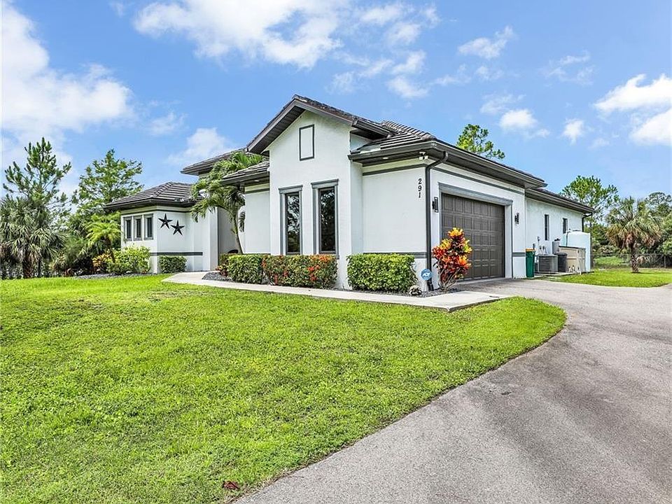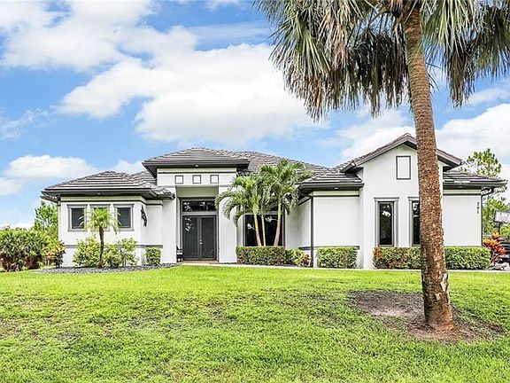 Welcome to your private estate and the pinnacle of living in Golden Gate Estates, Naples! This meticulously upgraded home offers ultimate privacy and peace of mind on a fully fenced 2.5-acre lot. The property extends 40 feet into the canal—perfect for building your own dock—and enjoys breathtaking western exposure for stunning sunsets every evening. Security and comfort are top priorities with hurricane impact-resistant windows and doors, Wi-Fi-enabled Storm Smart hurricane screens across the full-length lanai, an automatic entry gate, and a whole-home surge protector. Tinted windows add energy efficiency and privacy, while the 500-gallon reverse osmosis system ensures high-quality water throughout the home. Inside, you’ll find upgraded soft-close cabinetry and matching granite in every bathroom, Lutron smart lighting, and a MyQ Wi-Fi smart garage system. The flexible layout features three bedrooms plus a den and three full baths, including a guest suite with private en suite bath and direct pool access—perfect for hosting.