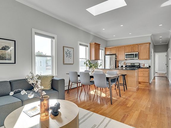 Wonderful opportunity to own a freshly painted top-floor condominium in a six-unit, professionally managed building. Convenient layout with two bedrooms and a private office. Open floor plan for living, dining and kitchen with one full and one half bathrooms. Skylights and nine windows make the unit exceptionally sunny — your plants will thrive, while Brazilian cherry floors add warmth throughout. The primary bedroom opens to a rear deck with stunning sunset views and includes a huge walk-in closet. In-unit laundry, abundant storage, and secure basement storage provide everyday convenience. Tandem parking with one other owner make the location even more attractive. Ideally located in East Cambridge, this residence offers easy access to Kendall Square, Inman Square, and Cambridge Crossing, along with the Red and Green Lines, bus routes, and nearby bike paths. A perfect blend of modern comfort, neighborhood charm, and city convenience.