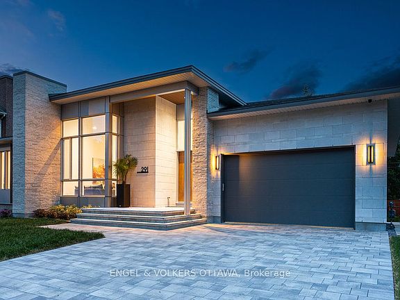 This exquisite custom-built residence by Cartesian Homes is a refined blend of modern architectural and timeless elevated design. From the moment you arrive, you're welcomed by a dramatic 16-foot foyer, setting the tone for the elegance and volume that defines the home. Just off the entry, a beautifully finished powder room and a spacious main-floor office offer a perfect balance of luxury and functionality for everyday living. The home unfolds into a grand open-concept living space, where 14-foot ceilings and striking clerestory windows create a breathtaking sense of light and scale. Designed for seamless flow, this central gathering space opens effortlessly to the outdoor living area, blurring the lines between indoor comfort and open-air relaxation. At the heart of it all lies the custom kitchen a masterfully crafted space showcasing rich millwork, graceful architectural curves, and polished detailing. Outfitted with panel-ready appliances that blend beautifully into the cabinetry. A fully outfitted prep kitchen and pantry perfect for entertaining providing function with complimentary aesthetics. The main floor features two generous bedrooms with private ensuites, including a primary suite that offers a tranquil retreat with a spa-inspired bath, shower, his and hers vanities, and walk-in closet. Downstairs, the fully finished lower level offers versatility with a second laundry room, home gym, two additional bedrooms, two full bathrooms (a third ensuite), and a sprawling recreation room designed for a home theatre and games area. The home features a double car garage with access through a custom mudroom, thoughtfully appointed with built-in storage. The exterior combines bespoke materials with maintenance-free composite fluted cladding, brick and stone elements, and durable steel siding designed for minimal upkeep. With thoughtful flow, soaring spaces, and distinguished craftsmanship throughout, this turn key home is complete. You won't find another like it.