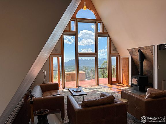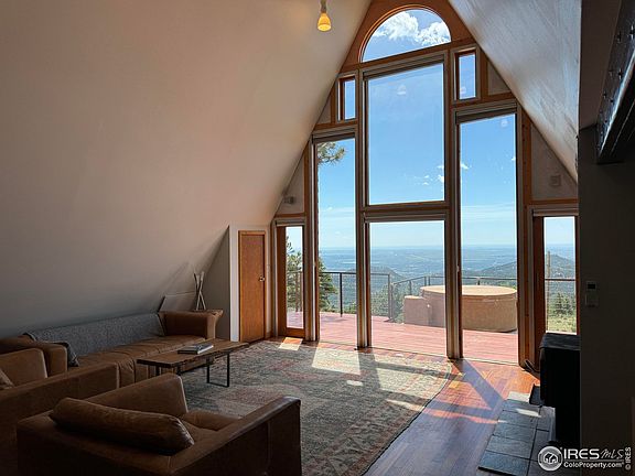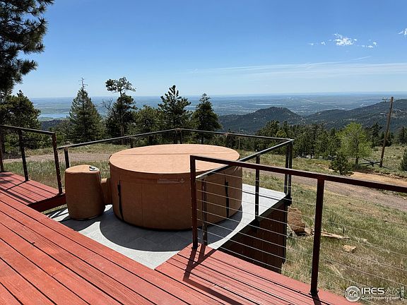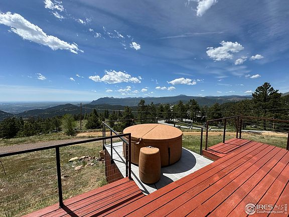 45K IN UPGRADES OVER THE PAST MONTH INCLUDING A NEW ROOF MAKE THIS HOME SHINE & READY FOR ITS NEXT OWNER AT AN UNBEATABLE PRICE! Some of the most expansive and unobstructed views in Boulder Heights and the area with a 300 degree panorama overlooking Boulder, Denver, and DIA, including the Flatirons and Indian Peaks to the West! The dynamic, all-encompassing view is showcased by floor to ceiling windows on the South side of the home. Bask in the views outside on the wrap around deck, in the hot tub, or from the balcony off the primary suite! The unbeatable location is further enhanced by rare end of the road privacy and easy year round access, including a South facing driveway. Innovative and custom artistic design will intrigue buyers who do not want a cookie cutter home. From rounded walls wrapped with sheets of copper and black granite rock to the stainless steel stairway to stained concrete kitchen countertops to a 25 foot tube shower replete with a skylight and mosaic tiling, you will be allured by the creativity put into curating this one of a kind beautiful close-in mountain retreat. An open floor plan with vaulted ceilings, Brazilian cherry wood floors, cherry cabinets, Quadra fire free-standing wood stove in living room, entertainment room with multiple flex uses, 2 mini-split a/c units (kitchen and upstairs bed), office in loft area upstairs, and attached 2 car garage. New septic tank in 2023 with Septic Smart certificate in hand. Well + cistern provide 3 GPM from a well test done on 4/4/2025 which is available in docs. 2nd bedroom has a gas stove for auxiliary heat fed by a small propane tank that is self-filled at U-Haul at the bottom of Lee Hill Rd. Xfinity offers high-speed internet and tv (currently setup for 800kbps and can go faster if desired). Pre-wired for audio throughout with a hub in the closet by the front door. Buyer to verify sq ft.