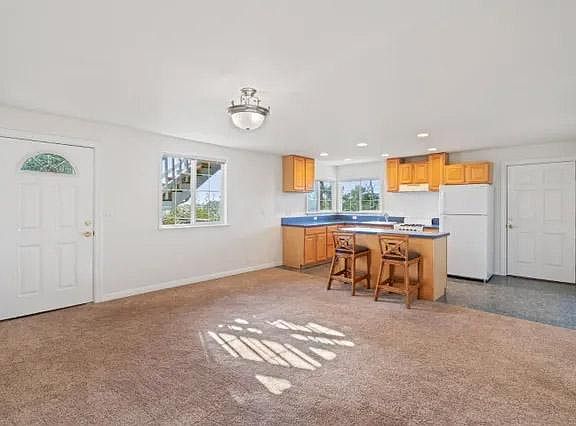 We have a wonderful, spacious 1-bedroom in-law unit for rent with separate entance on the side. The unit is carpeted and has an open kitchen, living, dining area. The bedroom has a window to the back yard and the outdoor space behind the house with a very peaceful outlook. There is a large bathroom with washer/dryer. All utilities are included. 1 year minimum lease. Easy walk to the harbor, Spangler's market, the jetty and the Press. The outdoors are just outside your doorstep. We live above with a dog and cats so you have to love animals as we let them outside and they roam around. You are welcome to share the yard and grow your own veggies if you'd like. Additional storage available for outdoor gear. All Utilities included. 1 Year Term.