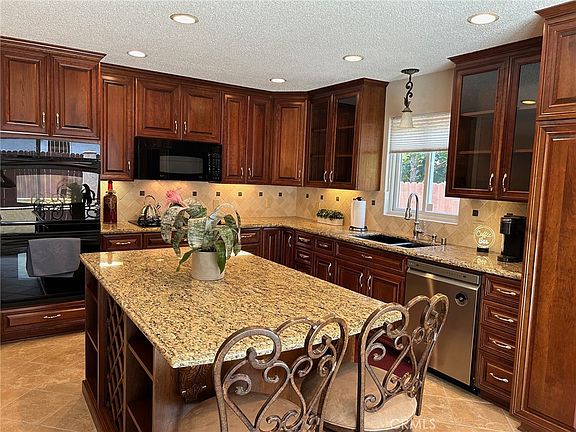 This 4 Bed 2 Bath ranch-style home has "new-installation" Anderson dual-pane windows to help maintain a constant temp throughout the home and virtually silence exterior noise. New Carpet throughout, porcelain tile in baths and high traffic areas. Featuring a high-efficiency Lenox programable HVAC system with germ-killing UV lighting. Remodeled kitchen has custom cherry wood cabinets granite countertops. Double ovens, five-burner gas cook-top. A-deep porcelain double sink, built-in trash drawer, a quiet efficient dishwasher, and a generous pantry with large slide-out shelves. The large island has seating for two, slide-out shelves, and a custom wine rack. The dining easily seats 8 - 12. The cozy living room is enhanced with a stacked-stone wood-burning fireplace, (can convert to gas logs). The master suite has room for a king-size bed, nightstands, and more. Includes two separate closets with built in shelving , there is a quiet efficient Hunter-Douglas multi-speed/adjustable-lighting ceiling fan, and six-foot sliding glass door leading to the backyard. The on-suite bath has a separate toilet and shower room. One bedroom is set up as a remote home office with a built-in bookcase/ lighted display shelving and two large storage cabinets. (You can remove the built in cabinet to restore the closet) The hall bathroom has a tub-shower combination, and a quiet and efficient ceiling fan with a nightlight. A huge lighted attic space runs the length of the home. It can be easily accessed using the pull-down ladder in the back-hall ceiling. The two-car garage is fully insulated and drywalled, with additional lighting, power outlets, and a quiet insulated automatic garage door. The temperature is maintained well and is ideal for a work bench and storage. Security provided by an ADT security system. Solar-powered motion-activated lighting is installed on the home's exterior, and a Ring doorbell with camera. The home's drought-resistant landscaping, roof, aluminum pergola, and concrete areas were new within the last three years. Outside the garage is a gated cement pad large enough for a car or camping trailer. Plenty of natural light is provided by a window over the sink and an eight-foot sliding glass door that opens to an expansive backyard. Enjoy entertaining family and friends in the huge gated backyard. The home's backyard oasis is easily maintained with two large custom-built planters, ready for lighting and a drip watering system, and lush artificial grass.
