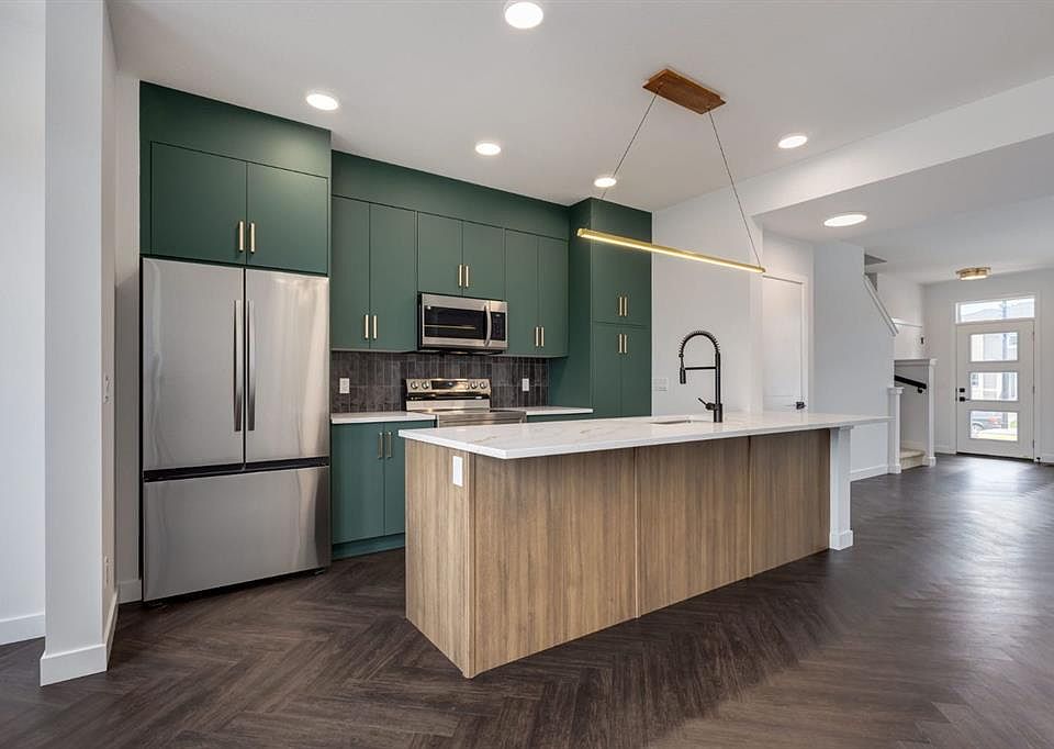Brand new the No condo fee 'TALO' town floorplan by Rohit Homes, with unmatched design interiors and striking exteriors to create elevated living. Featuring 1500 sq ft, 3 bed/2.5 bath + Bonus. Note: This unit has not yet started construction. All Perfectly located In SE Calgary's 'Sora in Hotchkiss', close to a park, featuring a pond, paths, easy access to major highways and more. Step inside to an expansive open floor plan that seamlessly connects living/dining and kitchen. KITCHEN FEATURES: SS appliances, quartz counters, large island (with place for bar stools), desginer cabinets, boutique lighting - a perfect place to gather and create masterful meals. Off the kitchen is the dining, mid room and half bath. The TALO plan offers large windows across the back and front, and with the high ceilings as well as open floor plan, it leaves the home feeling bright and inviting. Upstairs, find 3 good size bedrooms, bonus room, laundry, 2 full baths. The primary retreat includes a walk in closet, and spa like retreat full en-suite. Ensuite features: Single vanity, window, bath/shower combo, quartz counters and beautiful tile work. The lot features alley access in the back to a concrete parking pad. Located just outside the ring-road, east of Stoney Trail, offering quick access to highways and other amenities on the southeast side of Calgary. All pictures and 3D tours are of the 'TALO' floorpan that is completed, your unit may have different (colors/finishings/spec upgrades/design interior/elevation) depending on Lot - confirm with builder. At Rohit Homes, we know it’s not just about having a functional floor plan, it’s about having a space that you’re proud to show off. Each of our homes features a distinct look that is inspired by you - our customers. Built by a 4-time Home Builder of the Year with Peace-of-mind 1-2-5-10 year new home warranty. Unparalleled level to townhome living awaits. Note: The listed price includes GST - The First-Time Home Buyers' GST Rebate could save you up to $50,000 on a new home! You must be 18+, a Canadian citizen or permanent resident, and haven't owned or lived in a home you or your spouse/common-law partner owned in the last four years. Terms and conditions are subject to the Government of Canada/CRA rules and guidelines. *Visit show home at 318 sora way SE Calgary mon-thurs 4-7pm, sat/sunday 2-5pm. Self guided tours available outside those times!
