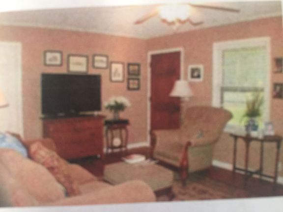 Brick ranch with attached carport, three bedrooms, French door access to attached deck from dining area, recently remodeled bath with walk-in shower, Laundry with electric and gas amenities.