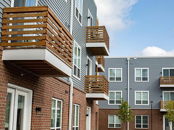 The Walhalla at Graceland Flats is a two bedroom and two bathroom apartment with 1,105 SF of space. This units includes an open concept kitchen and living room, large closet, linen closet, coat closet, in-unit washer and dryer, outdoor patio or balcony, your choice of two finish options, and Kenney Park views in select units. Call today to hear more information about this unit!