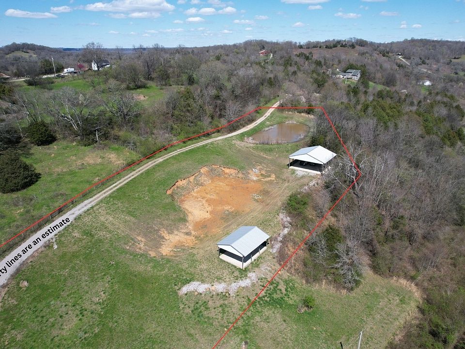 Scenic 2.5 acres with a stunning view of the countryside. This property features 2 open sheds with concrete floors (468 sq ft & 1,200 sq ft), a pond stocked with fish, and city water running to the building site where groundwork has already begun. This property provides an ideal canvas for you to put your personal touch to create your dream home.