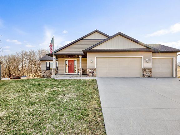 Check out this beautiful walk-out rambler with Creekside and Zumbrota Golf Club views! This 4 bedroom, 3 bathroom home features vaulted ceilings in the living, dining, and kitchen. There is a gorgeous butcher block center island that has ample storage. Upstairs you can find a spacious primary bedroom with a private bath & walk-in closet. The basement includes a stunning Wet Bar area that overlooks a huge family room for all your events or game day partys! Talk about views, the backyard has an artistic patio on a large yard with views of the creek and hole 18 of the Zumbrota Golf Course!
