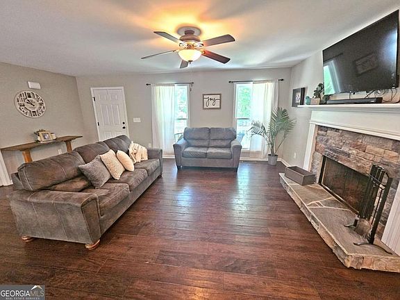 Living with convenience. Located in south lumpkin county with an easy commute to hwy 400. At only 5 years old, this home offers 6bd and 2.5ba above ground and a finished basement with 1 room, 1 full bath and a large living area(finished in 2023). Located on a private 1.14 acres with a fenced in back yard, firepit and storage shed. Walking distance to the neighborhood playground. Main living areas are all hardwood flooring. All bedrooms have BRAND NEW carpet. Basement is all LVP. Main level offers a living room with a wood burning fireplace, kitchen with granite counter tops and custom cabinets, dining area large enough to seat 8, Office/Bedroom with a closet, half bath for guests and a mudroom/laundry entrance from garage. Upstairs, you will find an oversized Primary Suite that you will love. Secondary rooms have large closets!! HOA is only $220 a year. Interior painted 7/31/2025 and septic inspected/pumped 7/29/2025 New Carpet comes with 10yr warranty. ONLY 15 minutes to downtown Dahlonega and only 2 minutes from the elementary school!!! This home is