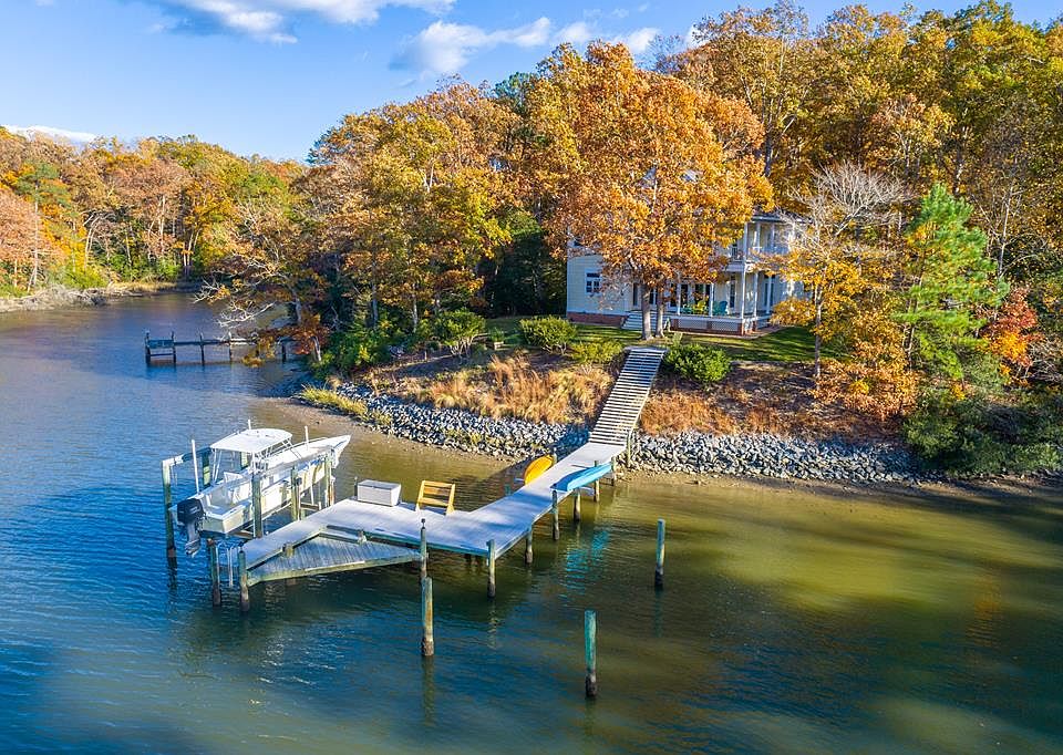 "Solace Point" on Taylor's Creek-This Gorgeous Custom Waterfront Home with Carriage House is on a wonderful waterfront point with protected shoreline offering lots of privacy on 1.79AC,.Fully Furnished including 27'boat, kayak's,list to be provided- Main home has bamboo flooring throughout, tiled bathrooms, 3 bedrooms, 3.5 baths in main house 1 bedroom 1 fullbath in Carriage house. Open floor plan, 10' ceilings on first floor, 9' ceiling on 2nd floor, new renovated kitchen featuring cherry cabinets, cedar stone counter tops, 6 burner-Zline propane stove with downdraft vent, stainless steel appliances, double oven. Butler's Pantry, tile backsplash, Utility room offering full shower and bathroom main floor, second level offers family room with gas fireplace, wet bar with wine cooler, french doors to balcony. Double covered porches front and back. Maintenance free vinyl siding with composite trim, irrigation system, 2 zone HVAC with propane backup, tankless water heater, emergency generator- up to 10 circuits, Rip Rapped shoreline -waterfront point, dock with 7000 boat lift and Kayak Racks -water and electricity at dock. 3rd floor carpet in office and bedroom, This gem will not last- great location to shopping, restaurants,golf courses, country club, the new state of the art Compass center with movie theaters. Call today to schedule a private showing of this Beautiful Waterfront property. No Flood Insurance required