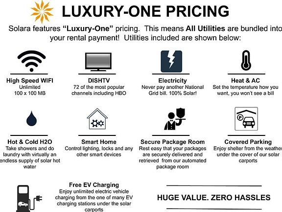"Luxury-One" pricing includes all of your housing costs. Know your true cost of renting with the ease of one monthly payment.