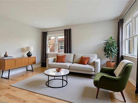 Check everything off your list! Located in Midtown just a short walk to Uptown Waterloo, Belmont Village, Downtown Kitchener, Waterloo Region Health Network, Victoria Park, Google and Catalyst, this adorable one and a half storey features a spacious lower level with separate entrance, perfect for entertaining extended family, teenagers, or even the possibility of income! Step inside the bright open concept floorplan, with large living room featuring warm wide plank flooring and updated windows with views of the mature streetscape. The nearby kitchen has timeless shaker cabinetry with floating shelves, classic tiled backsplash and handy live edge breakfast bar (preserved from the historical St. Jacobs Farmer's Market) The additional separate dining room (or main floor office!) has a built in buffet nook and bright garden door with backyard access! The primary bedroom is also on this level with plenty of storage space and a four piece bathroom nearby. Upstairs is carpet free with two generous bedrooms, a two piece bathroom, and plenty of space for an office area on the upper landing. The lower level (with stairs to separate side door entrance) is a perfect cozy retreat and features a huge recreation room with wet bar, and an additional updated four piece bathroom. A convenient laundry/storage room is nearby. The private backyard with mature landscaping is fully fenced with a huge deck and privacy wall. Long driveway with parking for two or possibly three vehicles. Minutes to everything you need at popular shopping and restaurants of Uptown Waterloo, Downtown Kitchener and Belmont Village! We’ve included some virtually staged images to give you some decorating ideas. An amazing opportunity for a classic home in a mature and tree lined neighbourhood!