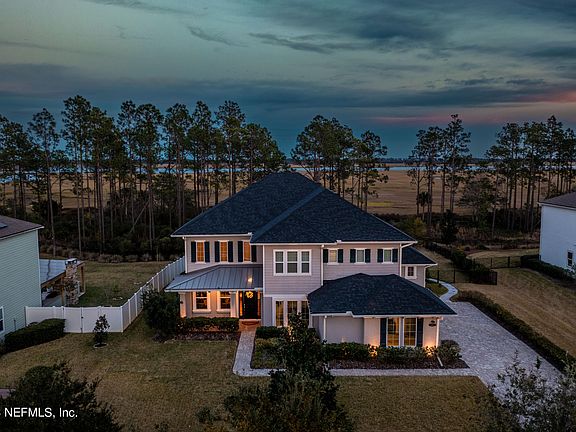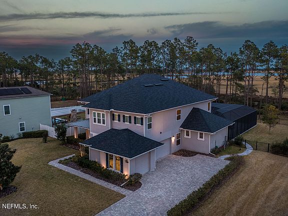 This stunning Palencia Marsh View home offers sweeping upstairs and downstairs views of the intercoastal waterway. This luxurious 5-bedroom 4.5 bath home features a two-story living room and atrium, coffered ceiling in the den, chef's kitchen, and a true owners retreat with its own living room and a stunning intercoastal view. The pool and summer kitchen are designed for resort style living. With 4656 S.F. of living area, every space in this home is large and inviting.