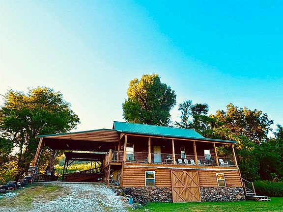Located in the coveted Ozarks this dream property not only fronts beautiful White River but is just minutes from the music, eateries, & festivals of world renown Mountain View! Quiet & peaceful River Valley offers unmatched sunrise & sunset views, excellent trout fishing, plus a boat launch. Enjoy watching eagles, deer, otters, & geese from back porch or while BBQing in the outdoor kitchen followed by star gazing around the large outdoor stone fireplace. The well-designed cabin is raised with a river rock filled concrete block foundation, slab floor, & ceiling offering a large unfinished area plus a 10–12-person safe room. The main floor has a timeless rustic cabin feel, open concept design, warm rich wood, vaulted wood ceiling, windows with views, & a large stone fireplace in the Great Room. The staircase to the loft's landing is a show piece leading to a spacious bedroom or bonus room with bath. The primary bedroom has a river view, small fireplace, & door to the covered back deck. With over 100ft of private White River frontage, well maintained, recent roof, plumbing, flooring, deck updates, it's a dream property perfect for families, retirees, or an ultimate vacation getaway!