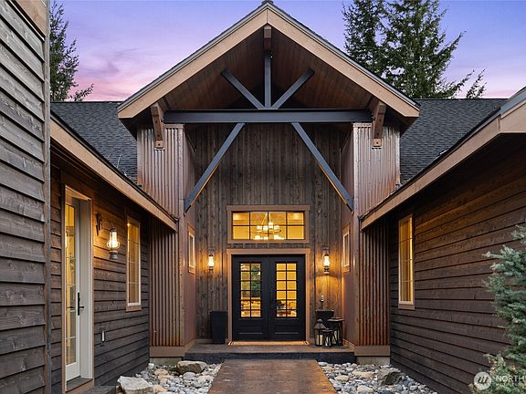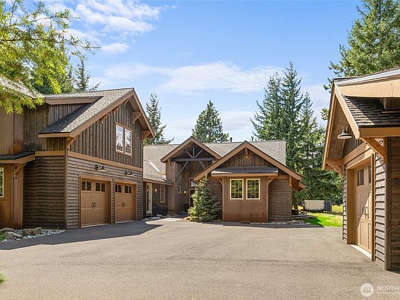 Set along the Par 3 7th fairway of Tumble Creek’s Tom Doak golf course, this 4-bedroom craftsman-style retreat offers luxurious mountain living. Perfect for entertaining or relaxing, it features an open layout with vaulted wood-beam ceilings and a stunning stone fireplace. The gourmet kitchen boasts a 6-burner gas range, island, and pass-through window bar. Nearly 1-acre of outdoor space includes a built-in BBQ, pizza oven, hot tub, and fireplace. Enjoy abundant natural light through expansive windows. Two main-level primary suites, a bonus room, ample storage, and both attached and detached garages provide room for all your needs. Ask about club membership opportunities!