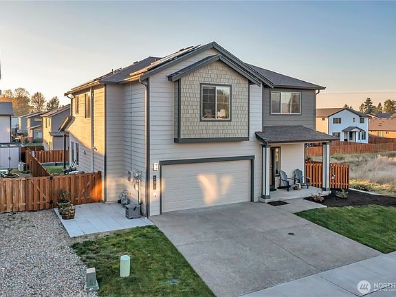 Welcome to Perkins Prairie & this beautiful Conner Home! Located on quiet dead-end street with large open field next door PLUS views of Mt. Peak & Mt. Rainier. Home features 2,464 sqft, 4 bed, 2.5 bath with bright, open floor plan. Chef’s kitchen with large center island, gas cooktop, granite counters, tile backsplash, walk-in pantry & plenty of cabinets. Open dining area & spacious Great Room with a cozy gas fireplace. Primary suite with 5-piece bath, Large hall bath with double sinks & convenient laundry upstairs. Fully fenced backyard with covered patio & garden boxes. Recent upgrades include AC, solar panels & electric car charging system making this a VERY energy efficient home. Just minutes from Hwy 410, parks & local shopping.