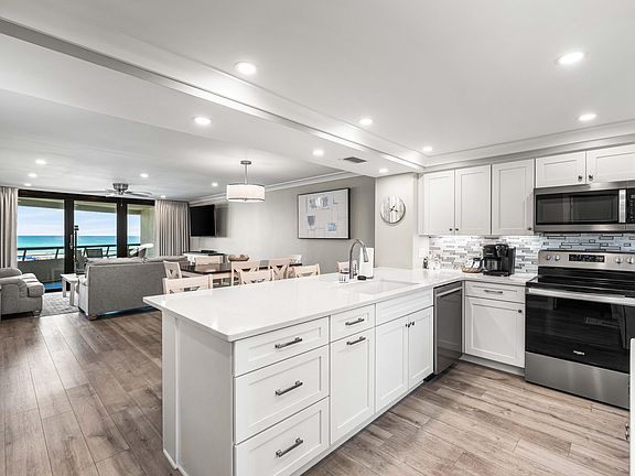 This beautifully renovated gulf-front unit must be seen to be fully appreciated. Formerly occupied by full time residents, this unit is rental ready immediately. All inspections have been completed, all special assessments have been paid and all repairs completed. This complex is unique as it owns over 400 feet of beach. If you are looking for a unit that has not been worn out from rentals, this is it. The unit comes fully furnished and all items convey. From the floors to the ceilings, this unit exudes a coastal luxury vibe. From your private balcony directly overlooking both pools in the complex and with an expanisive view of the gulf, you can enjoy your morning coffee or evening beverage with friends and family.