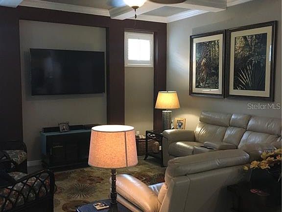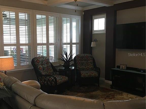 Gated 55+ Community of Trilogy in Groveland. Home shows like a model. Granite countertops, crown molding, under cabinet lighting and upgraded faucets. Floor plan is open and perfect for entertaining. All appliances, plantation shutters, inside laundry room also features lots of cabinets and a built in desk space. Wood floor in the den which features a murphy bed, perfect for guests. Oversized patio and lots of storage in garage while still allowing 2 cars. Community is guard gated, community pool, fitness center, tennis courts and golf carts welcome. Home is also on market for sale