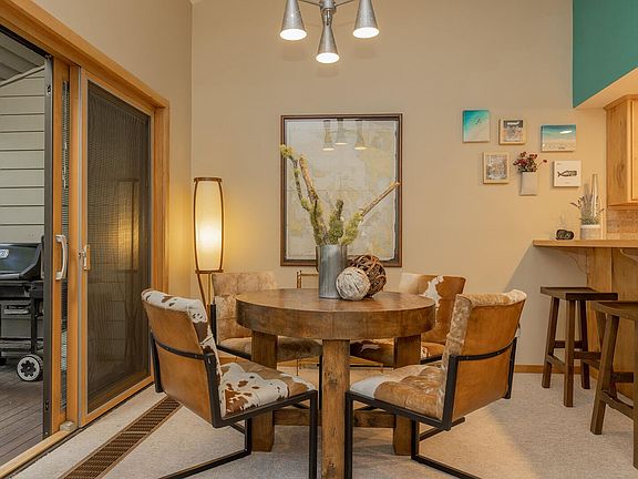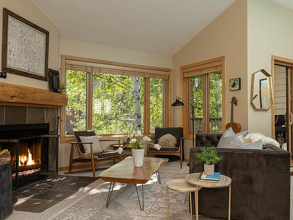 This stylish condo is perfectly located between the trails and downtown. Unobstructed western views with mature landscaping and open green space make this gem feel like an oasis, while being just a stone's throw to everything Ketchum offers. Upsidedown living provides a light, open feeling in the great room, with a cool sanctuary below for rest or work. Easy to show and won't last long.