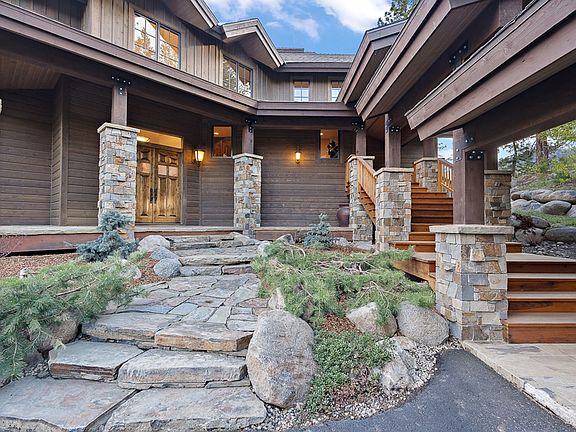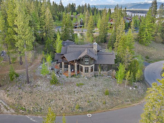 This beautiful custom-built estate home offers breathtaking panoramic views from every window! Enjoy exceptional ski-in/ski-out access with a groomed trail just steps away from the home. Spanning 5,000 square feet, the main residence features four luxurious en-suite bedrooms. Host unforgettable gatherings in the spacious main floor living area, complete with a gourmet kitchen and dining space, all centered around a stunning floor-to-ceiling custom stone fireplace. The lower-level gathering room, equipped with radiant floor heating and its own fireplace, is perfect for a home theater, office, or can easily serve as a fifth bedroom. The home boasts natural hardwood floors, custom granite finishes, elegant lighting throughout, and high-end appliances. It's also equipped with an AV Smart Home system. Both upper and lower levels feature wet bars for your convenience. Additionally, the adjacent one-bedroom guest apartment above the three-car garage offers 1,000 square feet of comfort, complete with a cozy propane fireplace, full kitchen, and laundry facilities.
