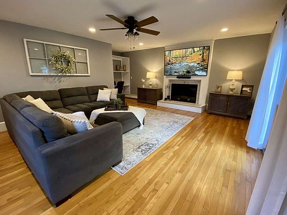 DON'T MISS THIS MUST-SEE HOME! This beautifully updated 3 bedroom Colonial boasts a first floor sun-filled living room with fireplace, dining room with bay window, and full bathroom with laundry. Kitchen with stainless steel appliances and gorgeous quartz countertops. At the back of the house you will find another spacious living room with fireplace and office nook, which opens up to a large fenced-in backyard with deck and television set-up. A perfect spot to relax and enjoy the game! On the second floor, you will find a large master bedroom with walk-in closet, two additional bedrooms, and a newly renovated bathroom. Hardwood floors throughout and ceiling fans in all bedrooms. Minutes away from 93, making this a commuter's dream. There is nothing to do but move in! Showings to begin at open house, Saturday 10/10 from 1-3pm and Sunday 10/11 from 1-3pm.