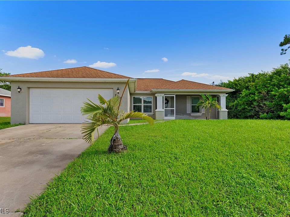 Welcome home to this meticulously maintained 3/2 freshly painted FENCED peaceful property nestled away on a quiet street in the highly desirable West side. It spotlights impressive porcelain tile flooring, an enticing tiled breakfast bar with GRANITE countertops & newer STAINLESS STEEL appliances, WALK IN closet, and a TILED front porch & screened back lanai great for entertaining. This split floor plan also highlights Cathedral ceilings, attractive decorative shutters, IMPACT windows, desirable HIGH speed internet, recessed lighting, pantry, window treatments, laundry room under air, and planet of room for a pool.It is just minutes from major amenities and a quick commute to Fort Myers. Schedule your showing today!