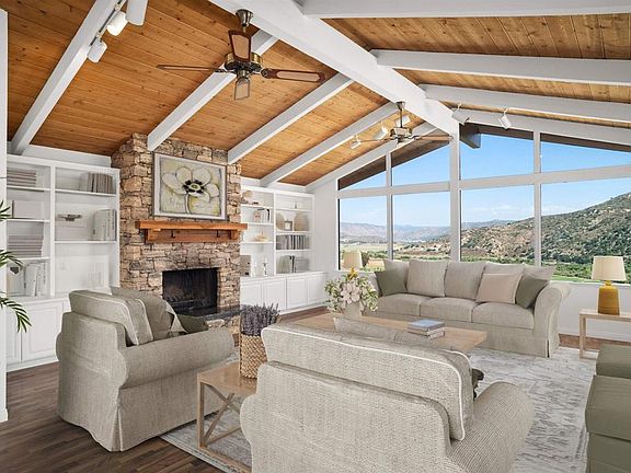 Spectacular Views! This home has amazing panoramic views of the San Pasqual Valley. Two upper level decks offer great outdoor living. Beautiful upgrades include a gourmet kitchen, dining room, living room with wood vaulted ceilings and an entire wall of windows to enjoy the amazing views! Master suite on the main floor along with an additional bedroom. There's still more, the lower level has 3 bedrooms, a full bath with exterior access, laundry room AND a BONUS ROOM with french doors that open up to a patio! Enjoy the convenience of a 3 car garage and a circular driveway. This home has it all including roof top solar panels!
