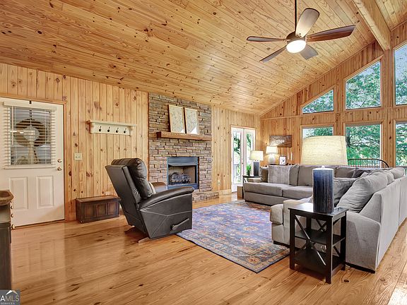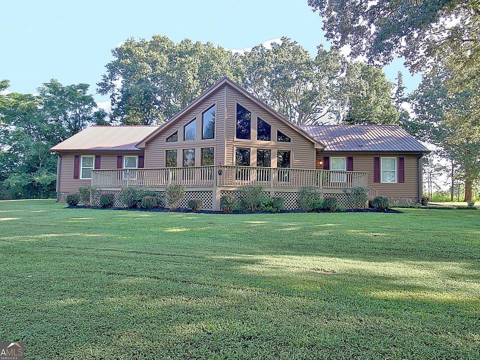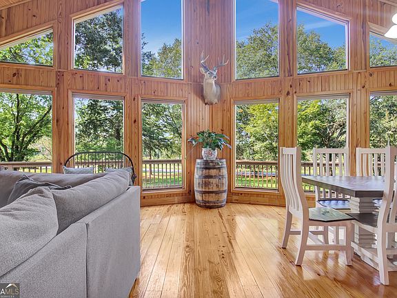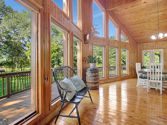 Welcome to 2910 Chalybeate Springs Road in Woodland, Talbot County, Georgia. Nestled on a peaceful 2.74-acres, this stunning 2,140-square-foot custom A-frame country residence with a durable metal roof offers the perfect blend of comfort, charm, and functionality. Inside, you'll find three spacious bedrooms and two full bathrooms, all highlighted by beautiful hardwood floors and a dramatic bay of windows that flood the home with natural light. The open-concept design features a warm and inviting living area with a gas-log fireplace, seamlessly flowing into a thoughtfully appointed kitchen with stainless steel appliances, ample cabinetry, and generous counter space. The adjacent dining area offers picturesque views of the surrounding farmland through expansive windows, creating a serene setting for everyday meals or entertaining. The primary suite includes a cozy sitting area and French doors that open to the back deck, while the ensuite bath features double vanities, a separate shower, and a luxurious soaking tub. Two additional guest bedrooms are bright and airy, sharing a well-designed full bath. Step outside to enjoy tranquil mornings or peaceful evenings on the front and back decks. The property also includes a fenced area, ideal for pets or small farm animals, as well as a versatile 18' x36' barn-style man cave equipped with electricity, water, and an outdoor bar-perfect for weekend entertaining. A second outbuilding with electricity provides additional space for storage, a workshop, or a she shed. Conveniently located near shopping, schools, and places of worship, this home also offers easy access to outdoor recreation with F.D. Roosevelt State Park and the renowned Callaway Gardens just a short drive away. Travel is a breeze with Atlanta's Hartsfield-Jackson Airport only 75 minutes away, Columbus just 45 minutes, and Newnan, Peachtree City, and Senoia all within a 50-minute drive.