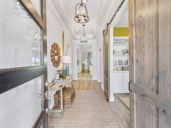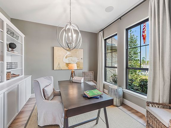 The 4-bedroom, 3-bathroom Burleson floor plan has everything you would need in a home and more. The main floor features a seamless flow between the dining area, family room and kitchen, a flex space, as well as a covered patio. The optional fireplace in the family room will surely add a sense of warmth to the home. The owner's retreat is tucked away towards the back of the home, fitted with a walk-in closet and a luxurious ensuite. The second floor leads you into the spacious loft, flanked by the remaining two bedrooms.