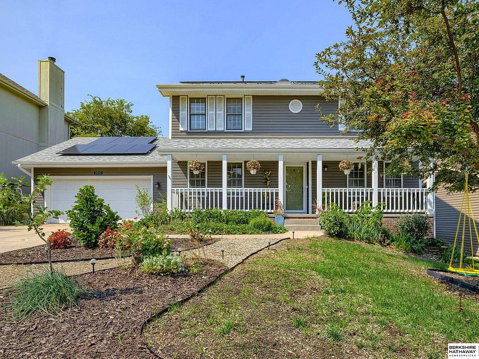 NEW PRICE of $399,000 + 3.2% assumable VA mortgage available! A gardener's paradise in Bellevue's Blackhawk neighborhood! This 4BR/3BA home offers nearly 3,000 sq. ft. of living space, a finished walk-out basement, and NEW solar panels for energy savings. Outdoors, enjoy your very own backyard orchard with apple, peach, pear, nectarine, and plum trees, plus grape vines, blueberries, raspberries, rhubarb, herbs, and more. The property is a Certified Wildlife Habitat and even features a chicken coop for sustainable living. Inside, you'll find LVP floors, granite countertops, stainless steel appliances, and a jetted tub in the primary suite. Recent updates include a new roof, gutters, siding, and a brand-new kitchen window on the way. Due to a recent storm, some siding is being replaced for a fresh finish. Conveniently located near Offutt AFB, shops, and schools - plus offering a 3.2% assumable VA mortgage - this home is ready for you!