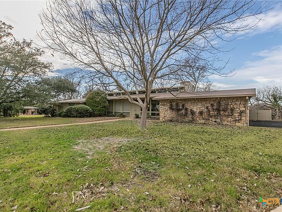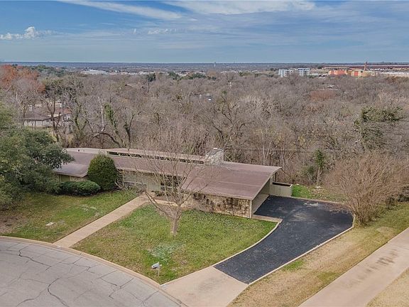 ONE OF THE MOST ADMIRED MID-CENTURY MODERN HOMES IN TEMPLE! The home was designed by well known architect Vail Logsden, and built in 1961, for a young physician and wife, who remained in the home for the rest of their lives. The home is situated on a bluff, providing views from the back of the house. The property includes two lots; one lot is located at the top of the bluff, and the second lot proceeds down the hill, behind the house, to the street below. The showpiece of the home is the living room with its vaulted and beamed ceilings, clerestory windows, and glass exterior walls on both the front and rear of the house. The living room has a native stone fireplace, built-in storage cabinets, and opens into the dining room. The home was designed with two spacious bedrooms plus an office/study. The primary bedroom is served by an ensuite bath which has abundant closets and storage. The galley style kitchen has windows which overlook the bluff, plus an adjacent laundry/pantry/storage room. Seller is waiting on Clark Roofing to replace the roof. This is a one-of-a-kind, architecturally designed, one owner home! Always cared for, but ready for some sensitive updating to make it your own special place.