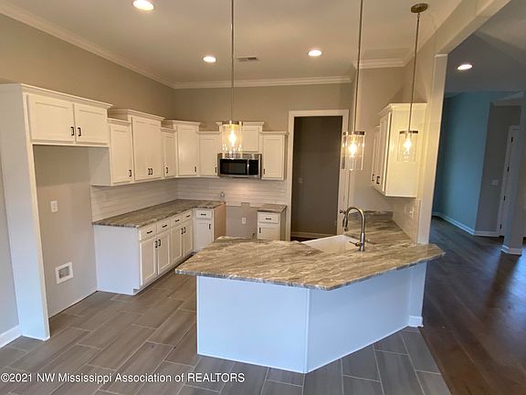 Welcome to Williams Ridge! One of Desoto Co's newest communities, where upgrades are standard. The ''Broadmoor'' plan offers 3 br's down and 2 br's up (or 1 up and gameroom up), 3 full baths, hardwood in great room, dining room and kitchen, custom kitchen with granite counters, tiled backsplashes, stainless appliances w gas cooktop, and white cabinets. Other features include huge master bath with no step walk-thru shower, free standing tub, large vanities w dbl sinks, and walk-in closet with all wood shelving, all wood shelving throughout house, tiled surround in spare bath down, security system w touch screen control, and oversized back patio area w extra concrete. These homes are loaded w extras! Dbl door entry also. No city taxes and just 5 min from Snowden Grove area or I-69. Hurry!