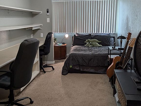 - Both bedrooms have a walk-in closet , personal bathroom, and large built-in desk with ample shelving storage.