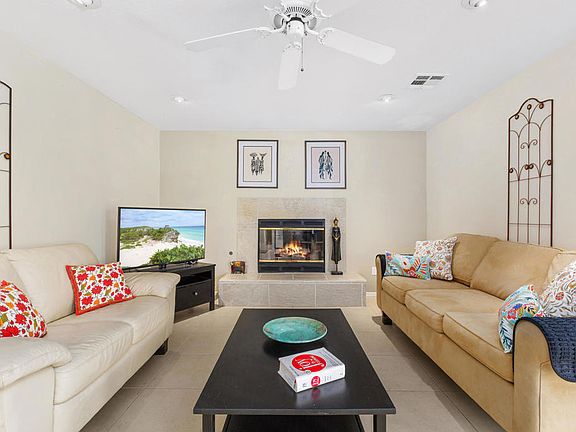 Saltwater pebble-tech poolGas fireplacePartial mountain viewsTanning shelfEasy-care desert landscapingPrivate oasisCorner lot