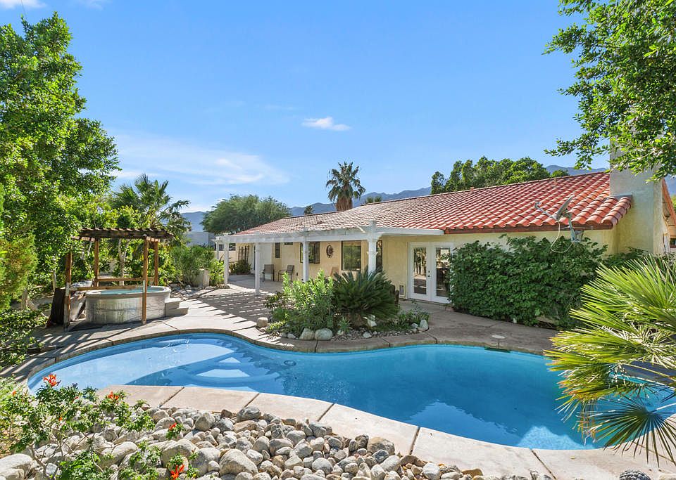 This beautifully updated 3-bedroom, 2-bath residence, built in 1990, offers 1,587 sq. ft. of comfortable living space on a desirable corner lot--with owned solar for energy efficiency. The renovated kitchen is perfect for cooking and entertaining, and opens to an open-plan living area with gas fireplace and direct access to the outdoor entertaining space.The primary suite features French doors leading to a pergola-covered patio, ideal for morning coffee or evening relaxation. Step outside to your private oasis--a saltwater, pebble-tech pool with tanning shelf, and a freestanding spa tub, all surrounded by easy-care desert landscaping and partial mountain views.Additional highlights include ample parking including an RV space, and close proximity to shops, restaurants, and downtown Palm Springs.