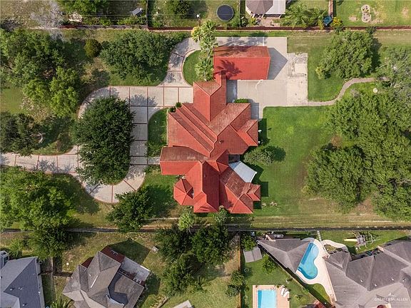 Gorgeous grounds await hidden behind large wrought iron gates and lined with mature trees brought in to provide great levels of privacy from the road. Poised for large-scale entertaining, this estate is nothing short of spectacular. Home provides a gourmet kitchen, 2 master bedrooms, 3 car garage with breezeway on 2.5 acres. Detached, private entrainment dwelling for hosting all family gatherings, lots of closet space, indoor dry sauna and jacuzzi, and 2 laundry rooms. Privately gated and secluded, enter through the oversized wrought iron gate to an expansive court with ample space for guest parking. Step inside and be greeted by walls of floor-to-ceiling windows allowing for natural lighting to flood the interior. Every aspect of this home is grand in scale and bold in design. This home is it’s own piece of heaven in Sharyland. Centrally located and close to everything.