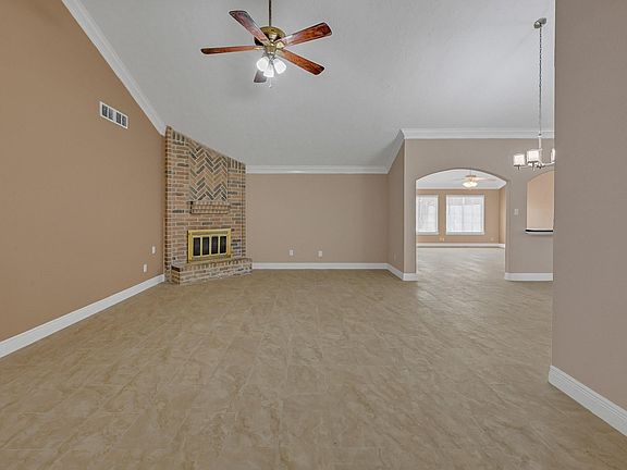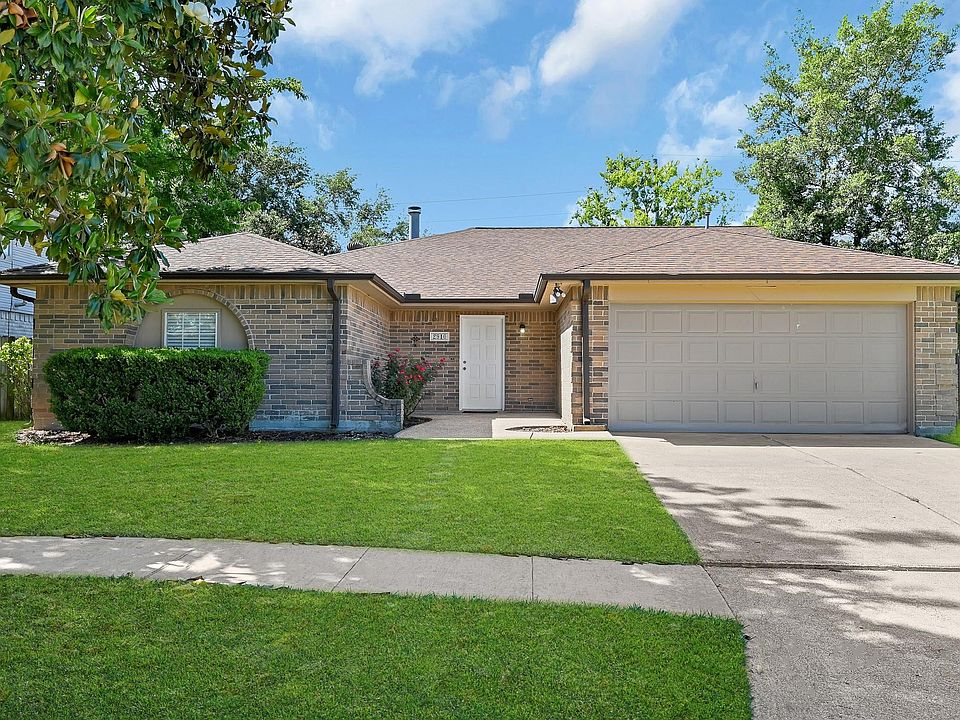 Fully renovated and unique Pearland home! 2910 Norwich features 4 bedrooms and 4 full bathrooms, including 2 primary suites with full en-suite baths! Fully tiled floors throughout, spacious bedrooms with walk-in closets. Beautiful kitchen with granite counters, stainless appliances open to the living room and den. There are 2 large living areas, 1 with a wood-burning fireplace and brick hearth. The second living area has bright windows and leads out to the back yard. Fully painted garage with washer/dryer connections and automatic garage door opener. You won't believe the back yard! Your oasis awaits with an in-ground pool and spa/hot tub, stone patio and an exterior FULL BATH for your pool guests! There's nothing else like it in Pearland! Come make this house your home!