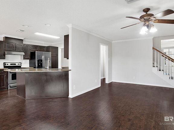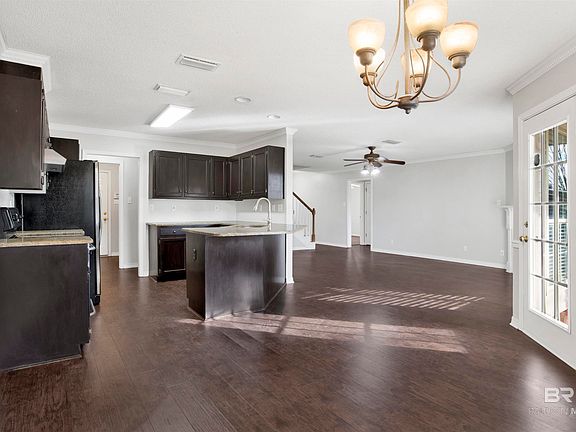 Spacious 4/3 home located in W. Mobile close to I10. This home features 3 bedrooms on the main level with a split bedroom plan. Primary has a trey ceiling with crown molding, and bath offers a double vanity, separate shower, garden tub and large walk in closet. Dark stained cabinets, granite and stainless appliances are featured in the kitchen which opens to the large breakfast room. There is a gas log fireplace with a built in TV cabinet in the greatroom, laminate flooring throughout the living area. Bedrooms are carpeted. French doors off of foyer open up to the separate formal diningroom. The beautiful wood staircase leads to the extra large bedroom/bonus room with a full bath and office space. Per seller the roof is 10years old, water heater is 2 years old and new HVAC installed in 2024. Privacy fenced yard, covered patio and large storage building with power and built in work benches. USDA ELIGIBLE for qualifying buyer! Buyer and buyers agent to verify all information during due diligence. Buyer to verify all information during due diligence.
