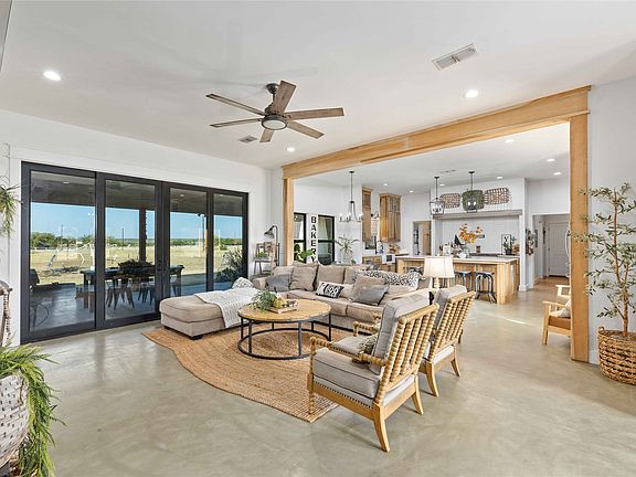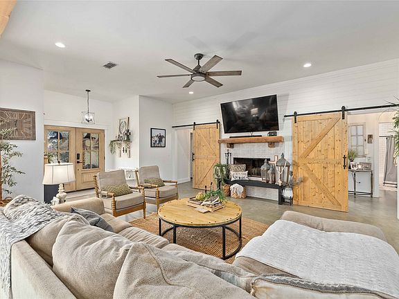 Welcome to this stunning modern farmhouse style where luxury and comfort meet in one of the area’s most desirable neighborhoods. Situated on a full acre comprised of two parcels per public records, this beautifully designed 4 bedroom, 3 full bathroom single-family home offers 2596 square feet of main living space plus an additional entertainment room that can easily function as a 5th bedroom, home office, or flex space. The open concept floor plan features a spacious living, dining, and kitchen area filled with natural light from large windows throughout. The kitchen is a chef’s dream, with a large leathered granite island, exceptional gas stove with built-in griddle, walk-in pantry, and ample cabinetry, ideal for both daily living and entertaining. The private primary suite offers a spa-inspired bathroom with a massive walk-through shower, double vanity, and quality finishes. Three additional bedrooms include a Jack and Jill bath setup, providing both convenience and style. Enjoy year-round outdoor living with a large covered entertainment area in the beautifully landscaped backyard. Additional features include a covered front porch, enclosed attached garage, separate small garage for tools or lawn equipment, dedicated mudroom area just inside from the garage, spacious utility room, and granite countertops throughout. A beautiful fireplace offers the option of wood burning or gas. Neutral color schemes throughout make it easy to move in and make this home your own. From the charming curb appeal to the expansive outdoor space and high-end interior touches, this property is truly an entertainer’s haven.