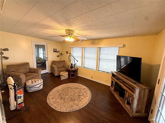 Affordable Living in Mission at Wagon City North – Minutes from Town where you own your lot! Welcome to a relaxed, low-maintenance living in this furnished 3-bedroom, 2-bath manufactured home, located in a peaceful 55+ community offering a recreational area with some social activities and events. This home features approx 1800 sq ft. of bright and open floor plan with vaulted ceilings. Galley style kitchen with plenty of storage and counter space. Large primary suite with garden tub, separate shower, double vanities and walk in closets. Two Living Areas plus a multi- purpose room that could be used for exercise or hobby room. Covered carport, outdoor storage shed, mature trees and a good size fenced yard. Annual HOA fee is $675 includes a lot & half, trash included, clubhouse, and events Priced at $139,900.
