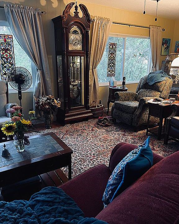 Welcome to easy living! This spacious floorplan with 2 master bedrooms is tucked into a private space surrounded by trees and beautiful plants. Enjoy the fresh air on a great covered deck, fenced in garden area w/shed and conveniently park in the 2 car side by side port. Great room has nice big windows with views and there is plenty of room for a home office or separate living area. All windows are new double pane and there is a mini split unit to save on energy! Bathrooms have been nicely updated, one with a new jetted tub. Indoor laundry room with storage too. Park has a pool, clubhouse and fitness area and is located close to shopping, restaurants and transportation. This is a great place to call home!