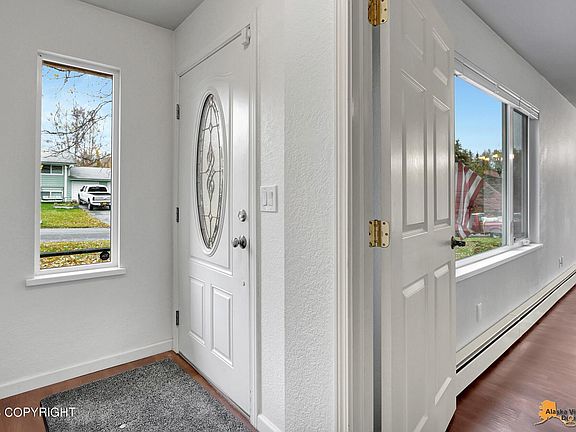 Step into this timeless ranch-style home updated in 2016 w/new windows & LVP flrs throughout. Kitchen w/new cabinets, solid surface counters & SS appliances. An arctic entry welcomes you into the warm open space featuring a brick fireplace w/gas starter. Some handicap accessible features such as interior ramp from 2 car garage. To be sold in AS-IS Condition.The south-facing fenced lot beckons w/mature trees & landscaping, perfect for gardening with large greenhouse and separate shed.