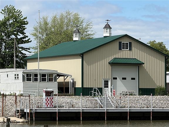 WATER FRONT DOUBLE LOT [approx 0.27 Acre Lot] with water on back of the property and the entire side. The EXTENSIVE DOCK is exceptional !!! 36x64 Outbuilding built in 2020 [with very tall ceilings and 2 large overhead doors] is truly Terrific in addition to the 2 Bedroom, 1 Bath, Laundry 65x14 manufactured home which sits Overlooking Water and Great Dock. The huge Outbuilding was an extremely substantial cost and a tremendous asset to the property. It has woodburners (Gas & Pellet) as well as a loft office. With there being water on the entire side of the homesite, the smaller home sits right in front of the water, the entire length of the home, which provides additional privacy for the new owners. The owner inherited this opportunity and does not live nearby and wouldn't utilize it enough to keep it. So this is a Rare and Terrific Opportunity to own waterfront property with access to the Portage River and Lake Erie. With waterfrontage on 2 of the 4 sides of the property and no homes across the canal on the long side of the property this property provides unique privacy and access. Come enjoy the weather, water, & fun !