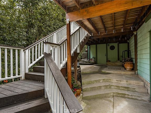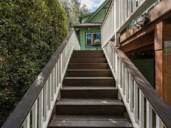 MODERN CANYON LIVING AT IT'S FINEST! This turn-key move in ready home is nestled in a breathtaking canyon setting. Inside, this stunning 2-bedroom, 2-bathroom home offers a private spacious livable loft that can easily be converted into a 3rd bedroom. This architecturally captivating two-story home boasts soaring 17-foot-high beam ceilings in the living room, custom-built wall-to-wall bookcases, and a charming, vintage cast-iron woodstove in a large rock fireplace enclosure, creating a warm and inviting ambiance. The elegantly designed interior features wide-plank white oak flooring that flows seamlessly throughout the main level, enhancing the home's sophisticated yet cozy appeal. The gourmet kitchen is equipped with high-end appliances, while the delightful breakfast nook offers a peaceful spot to enjoy your morning coffee. Exquisite windows fill the home with natural light, including custom round and stained-glass accents that add a touch of artistic charm, complementing the unique character of the canyon community. Climate control is effortless with an adaptive Nest thermostat system, ensuring year-round comfort. A separate basement laundry area includes a washer and dryer. Step outside onto the gorgeous wraparound front deck and staircase, crafted from premium, water-resistant Brazilian Ipe hardwood, offering a picturesque setting to enjoy the surrounding beauty. The spacious two-car garage offers ample storage and a custom-built wine refrigerator. The driveway is framed by majestic mature olive trees, a large Italian stone pine, and lush strawberry trees, provides a grand entrance to this serene retreat. The charming, low-maintenance, fenced-in backyard is a private oasis, featuring an inviting outdoor entertainment space, a dedicated grilling area, and a lush array of vibrant herb bushes and fruit-bearing trees. Towering, mature hedges ensure ultimate privacy, while expansive windows throughout the home offer breathtaking verdant views from every angle. Located on the prestigious Olive Hill, this home overlooks the historic Modjeska House and Gardens and is adjacent to both Tucker Wildlife Sanctuary and the popular Harding Truck Trail for both hiking and mountain biking. The tightly knit community of Modjeska Canyon hosts events throughout the year to bring the community together making it a very unique and special place to call home. Don’t miss the opportunity to own this exceptional canyon retreat.
