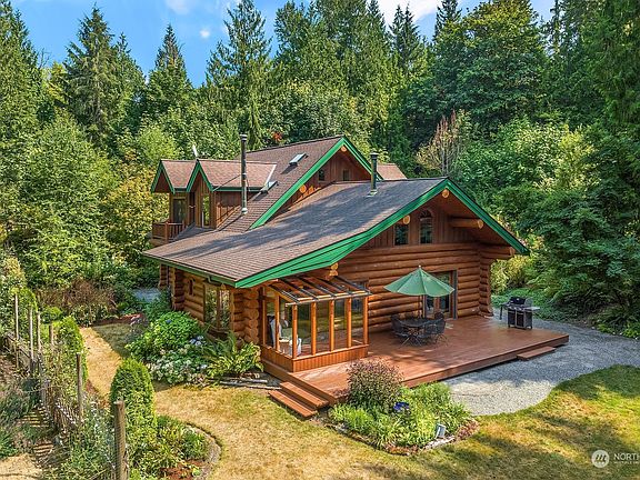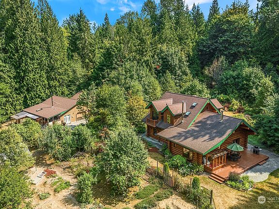 Established organic homestead on 5 magical acres with pasture, orchards and gardens. Surrounded by private woods yet 20 minutes to Redmond. Turnkey farm/glamping income or rental potential with the detached ADU and sleeping cottage with living roof. Great room concept with soaring ceilings, 4 bed, 2.5 bath, country kitchen, large mudroom, family room and solarium off the main living area. Detached garage, oversized carport, storage rooms and offices. Walk the private trails or continue to Tolt McDonald Park. AC with heat pump, water cisterns and large vegetable garden provide self sufficient living just minutes from town.