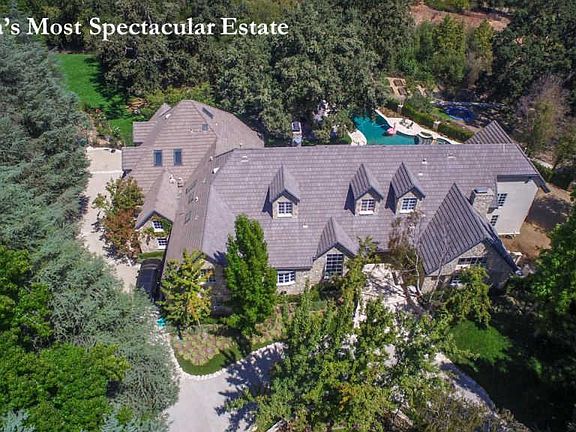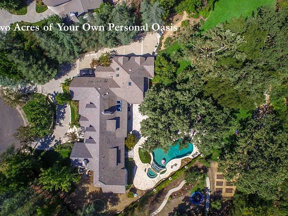One of a kind estate is perfectly sited on a premier end of cul-de-sac 1.87 acre lot within the prestigious community of Medea Valley Estates. This 6 bed/ 7bath estate home spans over 11,000 sq ft of grand scale & curated artistic design. Interior amenities include wide wood plank floors, vaulted ceilings and picture windows overlooking expansive parklike private grounds. The main level envelopes an open floor concept featuring gracious formal living and dining rooms, chef's kitchen w/ adjacent great room, game room and dramatic library w/ entertainer bar and distinctive fireplace. Sumptuous primary suite featuring a luxurious spa like bath and spacious walk-in closet is also found on the main level.The upstairs bedroom wing offers four impressive secondary bedrooms.The impressive gourmet kitchen features professional top of the line appliances, custom cabinetry, marble counter tops & butlers pantry. The adjacent sunlit great room is the heart of this home with floor to ceiling fireplace, breakfast area and adjoining game room. Impressive home theater and meditation sanctuary complete this artistic masterpiece. Beyond the numerous picture windows & glass doors lies a magical expanse of massive Oaks, mature landscape and rolling green lawns. Inviting pool & spa, BBQ station with lounging deck, playground, zip line, vegetable garden & lighted play court w/ double BB hoops add to this one of a kind enchanting property.