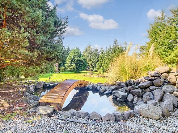 This property has endless possibilities! 4720 sq. ft Rambler on 3.68 acres with extra-large finished Daylight basement. Upstairs has 4 bdrms, 2 baths, Chefs Kitchen, Dining Room & deck overlooking the private acreage. Incredible living room area w/recessed ceilings & large picture windows overlooking the front waterfall/pond. Daylight basement is complete with full kitchen, bedroom, family room, office space & full bath & parking, access & storage. Perfect for Multi-Generational Living, Home Business,or Rental Income. Property is fully fenced with private gated entry. Many outbuildings, 2 RV Parking areas w/Hook-Ups. All this in a Wonderful Setting. Perfect for a farm or ranch, cows, horses or RV's, you name it! Wired for Generator.
