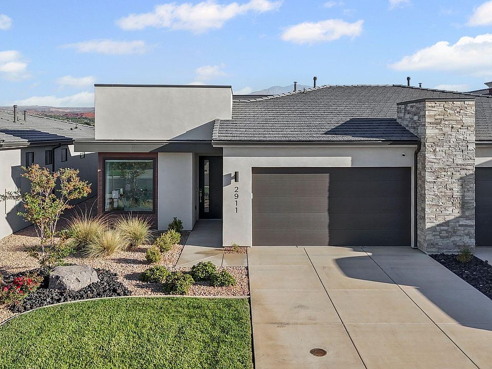 Prime location conveniently located near shops, dining, medical facilities and recreation. Enjoy energy efficiency and cost savings powered by Dixie Power. Stylish Single-Level Patio Home. This beautifully designed home features a split floor plan with soaring 10-foot ceilings and 8-foot doors which create a spacious, open atmosphere. Enjoy premium finishes including luxury vinyl plank flooring, quartz countertops, backsplash straight lay, custom cabinetry, ceiling fans, blackout roller shades and covered patio perfect for relaxing or entertaining. Exceptional Features: oversized garage, private backyard, modern interior upgrades. Resort style living with access to top-tier community amenities. Sparkling pool, meandering lazy river, pickleball courts. Contact listing agent to learn more.