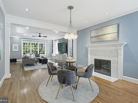 Welcome to this spacious residence offering over 4,250 square feet of beautifully designed living space, nestled among mature trees. Step through the grand entry foyer into a stunning center hall with a sweeping staircase, setting the tone for the gracious layout throughout. The main level features a formal living room and an exquisite dining room adorned with designer wallpaper—perfect for entertaining. A sun-drenched family room with custom built-ins, recessed lighting, and large windows invites warmth and relaxation, with direct access to a serene back deck shaded by a canopy of trees. The heart of the home is the newly updated chef’s kitchen, featuring a central island with quartz countertops, top-of-the-line appliances, glass tile backsplash, modern lighting, and a cozy breakfast nook with a fireplace. Just off the kitchen, a newer mudroom with custom cabinetry connects to the spacious two-car garage. A main-level office with patio access and a sleek new powder room with designer finishes complete the first floor. Upstairs, the luxurious primary suite offers a wall of custom built-ins, a walk-in closet, and an ensuite bath with a separate soaking tub and shower. Two additional generously sized bedrooms, a full bath, and a convenient upstairs laundry room provide ample comfort and space. The finished lower level includes a large recreation room, an additional bedroom and full bath—ideal for guests or extended family—plus abundant storage and access to a lower patio and fenced backyard. This exceptional home combines classic architectural details such as crown moldings, hardwood floors with thoughtfully updated features throughout like recessed lighting. From the inviting outdoor spaces to the elegant interior finishes, this is a rare opportunity to own a truly move-in-ready home in a beautiful, tranquil setting in the City of Alexandria.