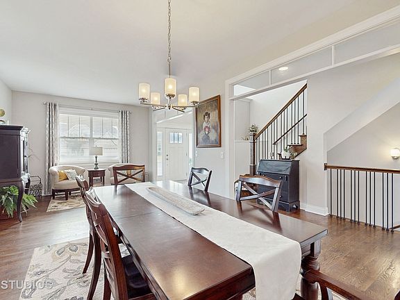 Welcome to this stunning home where elegance meets comfort! As you step through the wood-adorned entry into the two-story foyer, the warmth of the hardwood floors throughout the main level will immediately make you feel at home. The formal living and dining rooms are highlighted by transom windows, allowing abundant natural light, while offering ample wall space for your furniture. The gourmet kitchen is a showstopper, featuring full-wall cabinets with intricate millwork, a large center island, beautiful granite countertops, custom tile backsplash, and professional-grade stainless steel appliances. The family room, foyer, and window trim showcase exquisite custom millwork, adding character to every corner. Prepare to be wowed by the expansive master suite, complete with a sitting area and a luxurious master bath that includes a stand-alone soaking tub, a double glass-enclosed shower with custom tile work, and two spacious walk-in closets with dual entrances, offering plenty of room for all your storage needs. There are three additional generously-sized bedrooms, each equipped with ceiling fans and ample closet space, plus the convenience of a second-floor laundry room. The first floor also features a home office and a mudroom with built-ins for easy storage. The large basement is ready to be finished to your liking, offering endless possibilities. Step outside to enjoy the beautifully landscaped yard with an irrigation system, featuring a stamped concrete patio, pergola, and sitting area-ideal for outdoor entertaining. The home includes a 3-point lock patio door with internal blinds for added security and style. All exterior walls are constructed with two-by-six framing, providing excellent heating and cooling efficiency for cost savings year-round. The fully fenced yard adds privacy, and the 3-car garage provides plenty of storage. This home also includes a full-house humidifier for added comfort. Conveniently located near restaurants, shopping, and expressways, this home has it all and is ready for its new owners! Don't miss out-schedule your showing today!