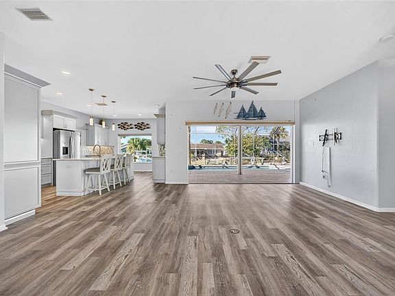 QUICK SAILBOAT ACCESS TO CHARLOTTE HARBOR LEADING TO THE GULF!! UPDATED 4-BEDROOM, 3-BATH, 3-CAR GARAGE, POOL HOME ON OVERSIZED LOT IN WHYCHEWOOD SHORES. Boasting 2,104 square feet of living space, designed for comfort and style. Double door entry welcomes you into an open concept living area, where high ceilings, vinyl flooring, natural light, and neutral tones create an inviting atmosphere. Expansive sliders in living room provide seamless access to the pool area, offering stunning views and effortless flow between indoor and outdoor living spaces. The heart of this home is the updated kitchen, completed in 2021. It offers light grey cabinetry, quartz countertops, stylish tile backsplash, farmhouse sink, and a walk-in pantry. The kitchen's large island, wine fridge and designer hood, is perfect for entertaining, while the large picture window provides captivating canal views. Retreat to the spacious primary suite, which has private access to the lanai and pool area. The suite includes his and hers walk-in closets and ensuite bath with dual vanities, soaker tub, tile walk-in shower, and toilet closet for privacy. Thoughtfully designed split floorplan places two additional bedrooms on the opposite side of the home, sharing a guest bath, while the fourth bedroom, ideal as an office, is near the primary suite with access to another guest bath that also serves as a pool bath. Step outside to the covered, screened lanai, complete with two new fans (2025), where you can relax or entertain overlooking the heated tile pool and picturesque canal. Beyond the lanai, one side of the home features a fenced side yard perfect for pets, while the other side offers a path leading to the dock and boat lift. The dock is an excellent spot for fishing, paddleboarding, or kayaking. Additional highlights include new roof (2023), water heater (2024), pool pump (2024), and hurricane shutters for protection. A short drive from the charming downtown historic Punta Gorda offering community events, arts, entertainment, world-class fishing, boating, fine dining, and beautiful parks, as well as easy access to the SWFL gulf beaches. Don't miss your chance to own this waterside treasure! Schedule your private showing today!